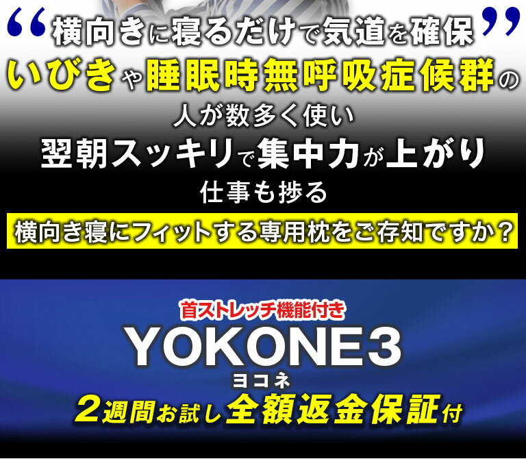 無呼吸症候群・イビキの人が使う横向き寝用枕YOKONE3(ヨコネ3) 【全額返金】ストレートネック対策マッサージ機能付 まくら マクラ 楽ギフ_包装 楽ギフ_のし