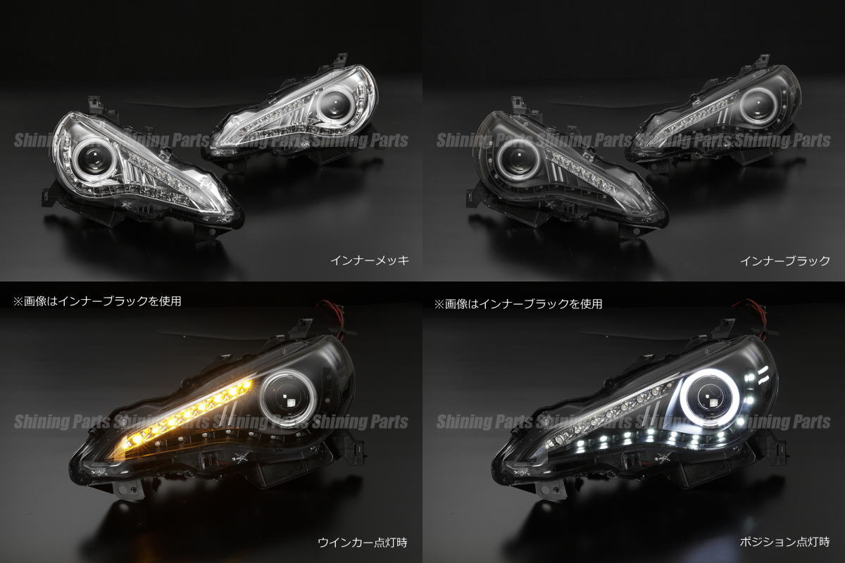 適応車種 ・トヨタ 86(ZN6)前期※2016年8月まで ・スバル BR-Z(ZC6)前期※2016年8月まで 商品内容 -ウインカー内蔵ヘッドライト- 86の車高を下げた際のウインカーの高さ制限に対応できるようウインカー内蔵。