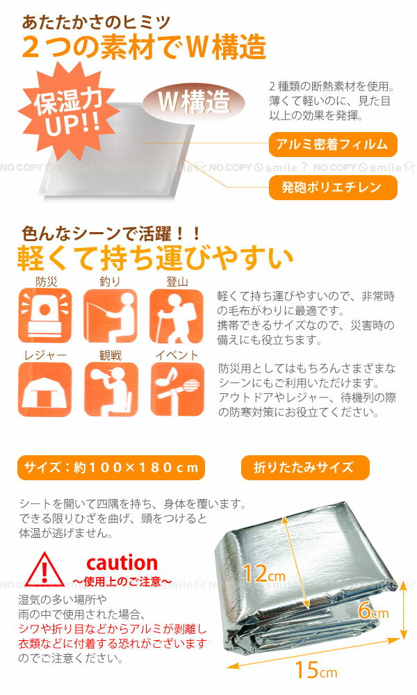緊急時の毛布代わりの使用はもちろん、キャンプやレジャー、チケット取りの待機列など、幅広くご利用いただけます。