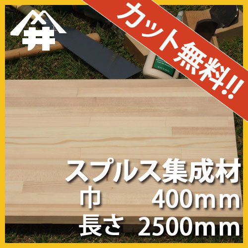 商品情報 商品名 【巾、長さカット無料!】スプルス カット集成材 サイズ:厚み45mm×巾400mm×長さ2500mm 樹種 スプルス サイズ 厚み45mm×巾400mm×長さ2500mm 重さ(目安として参考にしてください。